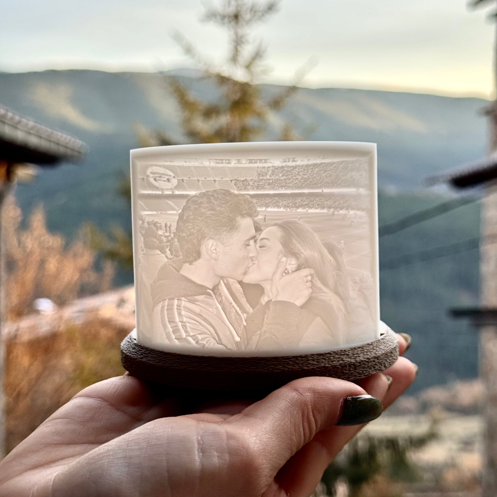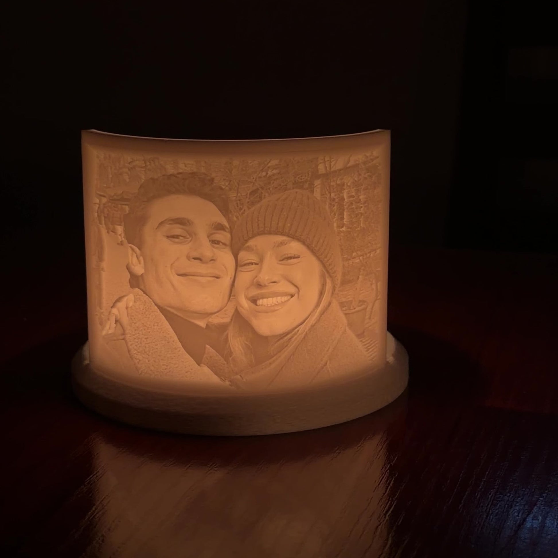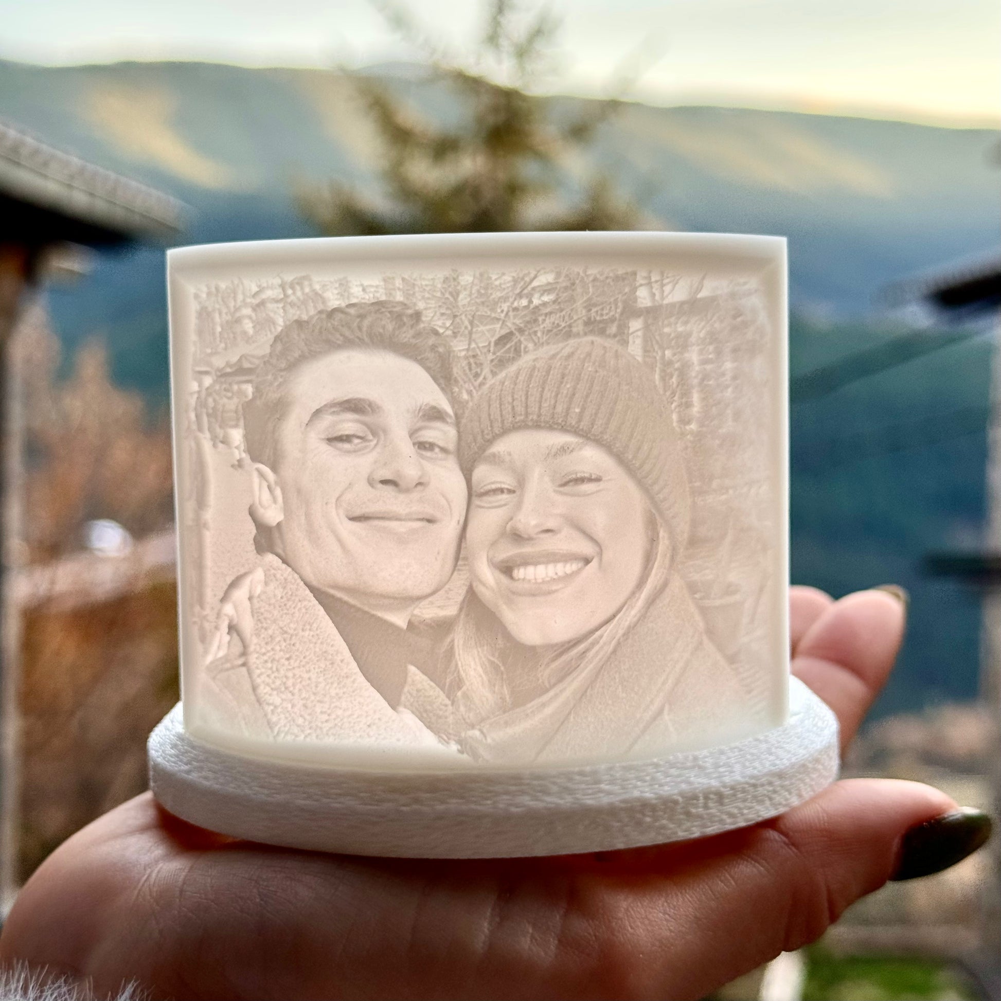 Cada pieza está creada con impresión 3D, y personalizada con la imagen que tú elijas. Simplemente enciende la vela y contempla como el fuego la ilumina.